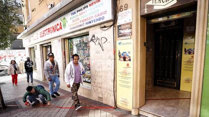 Selina Losa, madrileña, abridora de puertas. El viernes negociaba con John Gutiérrez, ecuatoriano afincado en España y asesor en uno de los muchos bufetes de extranjería que hay en el barrio de Usera, el segundo con mayor porcentaje de inmigrantes de la capital (sobre todo chinos y latinoamericanos). Selina le explicaba que necesitaba entrar en el despacho trasero de su local para pegar un trozo de cinta aislante en el suelo. “Es un proyecto artístico. Para conectar el barrio con Matadero. ¿Conoce usted Matadero?...”. La conversación duró unos minutos, seguida con pasmo por los clientes de la oficina, hasta que por fin el abogado respondió amablemente: “Claro, por supuesto, pasen”.