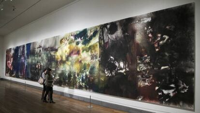Pólvora cruda negra o pólvora coloreada, lienzo y fuego. Estos son los ingredientes básicos de la obra del famoso artista Cai Guo-Qiang (Quanzhou, China, 1957), los mismos elementos con los que ha experimentado para las 26 piezas de gran formato que conforman la exposición El espíritu de la pintura que se puede ver en el Museo del Prado hasta el 4 de marzo. Es el primer artista contemporáneo que crea su obra in situ para el museo. La última de las ocho creadas en el Salón de Reinos la realizó el lunes por la noche ante un grupo de unas doscientas personas; era un cuadro de 18 metros de largo, titulado igual que la exposición y en el que resume su homenaje a los grandes maestros del Prado: El Greco, Tiziano, Velázquez y Rubens. El proyecto ha sido financiado por Acciona.