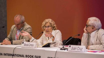 La alcaldesa, Manuela Carmena y el director de EL PAÍS, Antonio Caño, conversan en torno a la capital española en la FIL