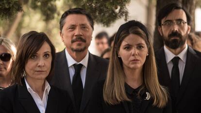 Desde el primer capítulo, todos en la familia Fuentes serán sospechosos de un crimen. Pero los actores no conocieron el nombre del culpable hasta el noveno episodio, como confiesa Manuela Velasco. “Aunque, de momento, ninguno nos lo acabamos de creer, nos parece que puede ser una tapadera y que algo queda por saber”, reconoce. “Todos nos miramos con cierta desconfianza”, bromea Bardem de un rodaje que se prolongará hasta el próximo mes. “Todo puede cambiar de un capítulo a otro”, remata.