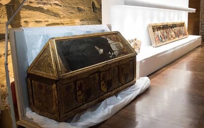 Entre las piezas que pudieron ver las autoridades estaba una de las cajas mortuorias del siglo XV, varias metopas del retablo de alabastro de Gabriel Joly (XVI) y una predela de un retablo gótico. El resto, según Lambán, tendrán que ser restauradas antes de exponerse.