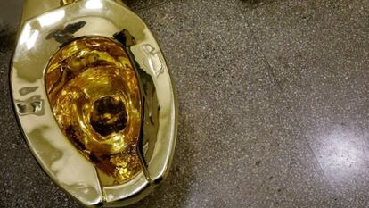 Cattelan, por su parte, evita comentar pese a que en el email se asegura que el artista estaría encantado de prestarlo durante un largo periodo. “Es un asunto muy delicado”, se limita a decir al Post. El váter estuvo en la quinta planta del museo para uso de los visitantes en una muestra interactiva. La crítica describió en su día la obra como una sátira a fortunas como la de Trump, que tiene instalada grifería de oro hasta en su avión privado.