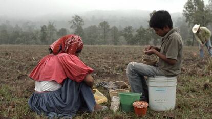 Una porción de pozol –bebida hecha con maíz– al día significa para ellos la supervivencia. Para lograrlo son varias las batallas que han tenido que pelear: la del crimen organizado, la de los empresarios, la del Gobierno y la de las variedades transgénicas. La recuperación del territorio ha sido la principal pugna de las organizaciones indigenistas, tras la ocupación del campo que tradicionalmente detentaban por explotaciones ganaderas, el desarrollo turístico o el cultivo de la amapola, de la que se extrae el opio, principalmente. En cuanto a la cuarta lucha, son muchos en el documental los que aseguran que el maíz importado –principalmente de EE UU, donde sí se permite la producción de este cereal genéticamente modificado, en contra de lo que establece la legislación mexicana–, “no llena”, “la tortilla sabe diferente”...