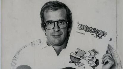 Fuimos coincidiendo por aquí y por allá a través de las décadas. Recuerdo, hace mucho, un miniespectáculo humorístico de una única representación que hicimos los dos en el bar La Mandrágora: lo que nos reímos. Hemos colaborado en causas sociales y nos hemos cruzado fugazmente en la redacción de EL PAÍS y en copichuelas varias, aunque era un hombre que no se prodigaba en los actos públicos. En realidad, nunca fuimos amigos, pero ahora me doy cuenta de que era una de esas personas a las que sientes como si fueran de tu familia. Un hermano querido al que tratabas poco. Siempre te alegrabas de verle, con su sonrisilla habitual y su graciosa expresión de ardilla lista. Su fama crecía y crecía pero él seguía igual, escurriéndose discretamente por las esquinas.