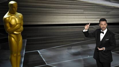 Tras presentar los Oscar por primera vez, Jimmy Kimmel aprendió una lección. “El anfitrión ha de mantenerse a un lado, el público no está ahí para ti”, contaba en los días previos. Dicho, hecho: el cómico lo aplicó a rajatabla en su segunda vez consecutiva al frente de la gala. Su monólogo inicial buscó pasar con equilibrio por todos los temas previstos: el acoso sexual, el control de las armas en EE UU, el error final de los Oscar de 2017, la 90ª edición de la ceremonia y, claro, las nominadas. Lo logró. Y ya por ello mereció un aplauso. Que dejara huella, eso sí, es más discutible. Lo único memorable quizás fuera un chiste sobre las prisas: enseñó un cronómetro y prometió regalar una moto acuática al agradecimiento más breve de la noche.