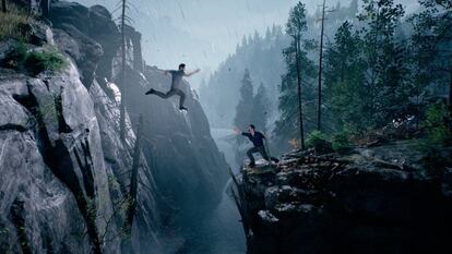 Josef Fares, que dirige, escribe y también firma con su físico envidiable la captura de movimientos de la acción, entiende perfectamente qué herramientas del cine potencian la interacción y cuáles se la quitan. El elemento más interesante con el que juega Fares es el encuadre. El doble encuadre, en este caso. Durante el juego, no pudimos evitar los nerviosos vistazos para ver qué hacía el otro en una secuencia tensa. Por ejemplo, durante la mencionada huida de la cárcel hay un momento en el que Vincent debe de fingir un malestar en la enfermería para lograr que Leo robe un utensilio clave para escapar. Mientras yo manejaba a Vincent y entretenía a la enfermera, Eva cruzaba el pasillo evitando a la guardia. Mi encuadre me permitía ver el ventanal del pasillo, por lo que podía seguir, con sudorosa tensión, como le iba yendo la cosa.