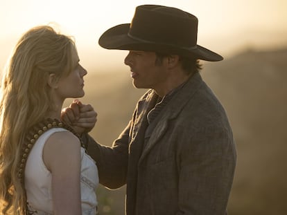 Newton adelanta que esta temporada Maeve, su personaje, tendrá una única motivación: encontrar a su hija. James Marsden solo quiere dejar de morir. “Teddy [un androide] es el Gary Cooper de Solo ante el peligro, el héroe, un tipo decente y el más rápido del oeste que en este mundo del revés muere una y otra vez. Pero ha llegado el momento de darle la vuelta a la tortilla y mostrar quién es”, afirma el actor. El motor de este cambio es la aparente mosquita muerta de Dolores Abernathy. Interpretada por Wood, la granjera es el Yul Brynner del Westworld original con algo de La libertad guiando al pueblo, de Delacroix. “Lo mejor de esta segunda temporada no es solo que es más épica o que descubrimos nuevos mundos”, se chiva la actriz anticipando ese japonés Shogun World, uno de los muchos universos recreativos fundados por la compañía Delos en la serie. “A mi me interesa que los personajes no son blanco o negro. Todos nos movemos en diferentes tonos de gris”, adelanta.