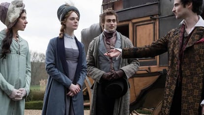 “Libérate y busca tu propia voz”. El consejo de su padre no abandonó nunca a esta joven Mary Shelley, nacida en Londres en 1797 y criada en un ambiente familiar poco dado a los sentimientos y las necesidades emocionales, pero marcado por la pasión por los libros y la filosofía. Mary Shelley hace un retrato sobre esta niña huérfana; su madre, la filósofa Mary Wollstonecraft, murió a los diez días de nacer ella, y ella trasladó toda su orfandad y soledad a esa criatura literaria que ha inspirado desde entonces a escritores, cineastas o dramaturgos. Se ve a la joven Mary Shelley escribiendo sus primeras palabras sentada en la tumba de su madre, una mujer feminista y radical, que influyó decisivamente en los pensamientos de su hija, en la curiosidad por la ciencia y el galvanismo, por la posibilidad de crear vida desde la muerte. “Aquí siento su abrazo. Es mi santuario”, se consuela la autora en el cementerio.