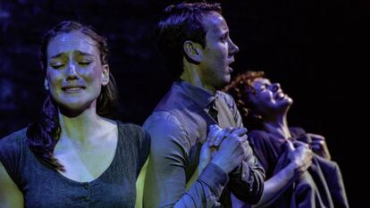 Lo primero es lo primero, los actores. Han hecho suyos textos muy complejos, enrevesados muchas veces, llenos de metáforas y metonimias, de referencias culturales. Por eso al principio puede costar entrar en la obra, pero su convicción en lo que dicen (y cómo lo hacen) termina facilitando la tarea. La versión de Petschinka sabe rescatar los conflictos que recorren la obra y consigue integrar con fluidez los monólogos interiores en las escenas dialogadas. Rafael Sánchez, en su puesta en escena, elimina cualquier distracción para darle todo el protagonismo a los cuerpos y a las voces. Hay algunos momentos en que se le va un poco la mano en las coreografías —en el burdel, por ejemplo—, pero ha conseguido lo más difícil. Dar con el ritmo. Acaso ese círculo que gira y gira, y donde los personajes avanzan y dirimen sus asuntos camino a ninguna parte, resume lo mejor de su propuesta: soluciones sencillas y con una fuerte simbología (el aborto, ahí al fondo, como escondido), para llevar con ligereza a la escena una obra de una estructura formal tan heterodoxa.
