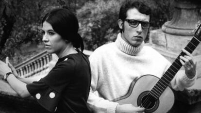 Serio, siempre de negro, con gafas oscuras, un vaso de whisky sobre una mesita y un cigarrillo en la mano, sentado en una banqueta alta, Eugenio hizo reír a miles de personas durante más de una década. “Las actuaciones eran cortas; no tenía mucho repertorio. Y yo veía que era bueno contando historias, así que le convencí para que lo hiciera”, cuenta Amadeu Molins, propietario del pub KM en Barcelona. Ese local se empezó a llenar en 1972 todas las noches gracias a los chistes de Eugenio, quien era el guitarrista del dúo folk Els Dos, que había formado en 1965 con su esposa, Conchita Alcaide.