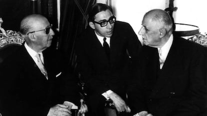 Hacía un año que De Gaulle —el líder de la Francia libre contra la ocupación nazi, el fundador de la V República, el estadista que quiso devolverle la grandeur a su nación y cayó arrastrado por la onda expansiva del 68— había abandonado el poder. Franco —el sublevado que ganó la Guerra Civil con la ayuda de los nazis, el proscrito de lo que entonces no se llamaba todavía comunidad internacional, que lo acabó tolerando por las necesidades de la Guerra Fría— llevaba más de tres décadas en el poder. A sus 79 años, De Gaulle había emprendido junto a su mujer y un ayudante un viaje privado por aquella España, mitificada por él, de Don Quijote y Carlos V. Y Franco, entonces 77 años, no desaprovechó la ocasión para agasajarlo, en la medida que el esquivo general lo permitió.