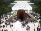 Antes de entrar en la sala que alberga 60 maquetas del artista indio, hay que pasar por el jardín del reloj de sol. A 24 horas de la apertura, el reloj ha sido retirado y en su lugar hay una peana de hormigón a la espera de recibir Sky Mirror, un disco de acero pulido de 2,1 toneladas, una de las obras más identificativas de Kapoor.