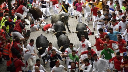 Último encierro de San Fermín: seis contusionados en una rápida carrera de los toros de Miura