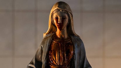 La serie, con aparición final de Monica Bellucci y una magnética presentación a base de procesiones, vírgenes e Il Mondo de Jimmy Fontana a todo trapo, engancha por esa necesidad de respuestas que nunca llegan o que, en realidad, plantean espirales infinitas de interrogantes. Heroína pura para los italianos, cuya historia moderna se apoya en un frágil equilibrio de misterios sin resolver en los que siempre participan Estado, mafia o Iglesia. Ahí siguen la desaparición de la niña Emanuela Orlandi en los ochenta, el atentado de Bolonia donde murieron 85 personas, el suicidio del banquero de Dios Roberto Calvi, la mano negra en los asesinatos de los jueces Falcone y Borsellino o los misterios de la logia masónica P2. Ni un solo culpable y mil teorías. En un país en cuyo corazón laten los secretos del Vaticano, el cruce de caminos y el choque entre opuestos siempre es el mismo. Fe contra ciencia, profano contra sagrado o ambición contra deseo. En este caso, contado desde la perspectiva de ocho personajes desesperados —un cura ludópata, una first lady alcoholizada…— que intentan utilizar a la virgen de plástico para redimir unas vidas al límite en un mundo que, como cantaría Fontana, sigue girando pese a ellos mismos.