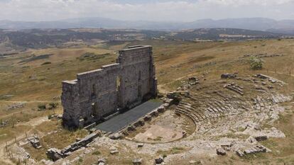 Pero lo cierto es que la titularidad pública tampoco garantiza la buena conservación, según la Lista de Roja, que mantiene en su nómina el yacimiento de Acinipo, cerca de Ronda, en la provincia de Málaga. Se trata de los restos de una ciudad romana que vivió una época de esplendor en torno al siglo I antes de Cristo, en la que se acuñó moneda y que conserva gran parte de un espectacular teatro. La Junta de Andalucía defiende la intervención que ha hecho en el espacio —está vallado y están establecidos días y horarios de visitas y el teatro está consolidado para que no se venga abajo— y la reciente firma de un convenio con la ciudad de Ronda para su “protección, investigación, conservación y puesta en valor”. Pero Hispania Nostra sigue denunciando su “deterioro progresivo por abandono, expolio y daños por animales domésticos”.