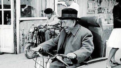 Y con todo, El cochecito es uno de los clásicos del cine europeo. Ganó el premio de la crítica en la Mostra de Venecia, pero en España nunca se vio en su versión original. Hasta hoy, que la Filmoteca Española proyecta -en una sesión especial dedicada a tres de sus trabajadores recientemente fallecidos y que se repetirá el 21 de septiembre- una copia restaurada procedente del Centro Sperimentale di Cinematografia de Roma, ya que en Italia sí se estrenó como la idearon Ferreri y Azcona. Quien sabía de su existencia es Pere Portabella, intelectual y político, presidente de la Fundación Alternativas, cineasta de rompedora obra y productor de tres filmes prodigiosos del cine español de inicios de los sesenta: Los golfos, de Carlos Saura, El cochecito y Viridiana, de Luis Buñuel. "Yo tampoco tengo una copia de la película", confirma el productor, "porque cedí los derechos comerciales a la viuda de Ferreri". Portabella recuerda entre risas aquellos dos años de locura. "Por amistad con Antonio Saura, yo produje Los golfos, de su hermano Carlos. Y en el rodaje en Madrid, un día se acercó Rafael Azcona, a quien yo conocía como escritor, y me habló de un guion que había coescrito con un italiano basado en uno de los relatos de su libro Pobre, paralítico y muerto". El italiano era el director Marco Ferreri, con el que Azcona ya había redactado El pisito años antes y que tras el fracaso de Los chicos, malvivía en Canarias. "Yo pedí que viniera, Rafael me contó que vendía sanitarios y artículos de óptica en las islas y que no tenía dinero para un hotel en Madrid y le pagué el viaje".