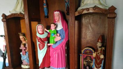 En 2003, Saro fue el encargado de restaurar el conjunto de tallas a petición de los propios vecinos que se pusieron en contacto con él. "Fui a hablar con ellos, se hizo un estudio y se pidió una subvención, por eso me parece un tanto extraño que se haya actuado de esta manera ahora", puntualiza. El restaurador asegura que las figuras presentaban daños por la intervención de hongos. "Descubrimos que una de las esculturas no estaba policromada en su origen, por lo que se dejó el material primario: madera de nogal".