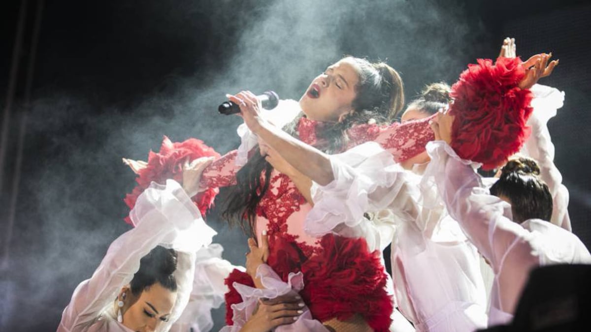Rosalía firmó la noche del miércoles un nuevo episodio en la historia de éxito más fulgurante que se recuerda en la música española reciente. Ante 11.000 personas presentó en la plaza de Colón de Madrid de El mal querer, su segundo disco, el primero en solitario. “No sabéis la ilusión que me hace este concierto. Os quiero mucho”, dijo la cantante nada más saltar al escenario vestida con un llamativo traje rojo a medio camino entre flamenca y patinadora. Acompañada de un grupo de bailarinas, coristas y un percusionista, que también hacía las veces de dj, El Guincho, quien además es coproductor del disco, Rosalía presentó su candidatura a nueva estrella planetaria, combinando el flamenco con los ritmos urbanos del trap, el R&B contemporáneo y el pop bailable.