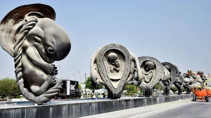 Catorce esculturas gigantes en bronce del artista británico Damien Hirst, que recorren el desarrollo de un feto desde la fecundación al nacimiento, dan la bienvenida a los pacientes del hospital de Sidra, en Qatar. El viaje milagroso, un conjunto instalado en el exterior del centro, culmina con un bebé recién nacido de 14 metros de altura. Las piezas han vuelto a ver la luz después de cinco años ocultas, supuestamente, por las críticas que generaron, según informa la agencia AFP.