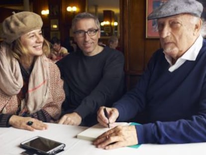 El más veterano de los colaboradores vivos de EL PAÍS, con Peridis y con Juan Cueto, hizo su primera vida en Madrid yendo al Café Gijón, cuando, como él solía decir, era más guapo que Marlon Brando. Ahora ya no se compara; pero en este tiempo, más de 40 años, ha consolidado un estilo incomparable que hace que los lectores lean este periódico por la última página también en verano. Ayer, casualmente, volvió al Gijón, de donde se había ausentado hace 15 años, “porque no quería envejecer ante un ventanal”. Esta entrevista tiene como fondo su nuevo libro, Lecturas con daiquiri (Alfaguara), en el que compendia, como en un cóctel, todo lo que da en EL PAÍS en las cuatro estaciones del año. Manuel Vicent, valenciano, nació en 1936 según algunas informaciones. Esta tarde presenta su libro a las 19.00 horas en la Librería Rafael Alberti (calle Tutor, 57), con su compañera, periodista y novelista como él, Nativel Preciado.