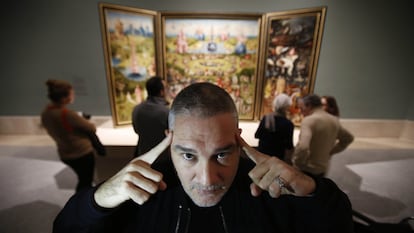 Aunque reconoce que cuando está en Madrid se suele escapar con mayor frecuencia al Museo Reina Sofía porque le gusta más el arte contemporáneo, admira la sección de Goya, su paisano lejano de Fuendetodos (Zaragoza). "Goya el Dios. Sus pinturas tienen mucha fuerza y lleva una crítica implícita", subraya. Los cuadros del Bosco también le "flipan". ¿Su favorito? El jardín de las delicias (1490-1500). "Aunque se pintó hace muchos años es una obra muy moderna, parece del siglo pasado. El Bosco era un genio soñador", dice mientras esperamos en la sala donde se expone el cuadro para poder realizar una de las fotografías para la entrevista. Minutos antes, se ha topado por casualidad con Suso 33, uno de los artistas urbanos con más solera, y que también estaba visitando el museo. Dos de los pioneros del hip hop en España poniéndose al día rodeados de obras de arte centenarias. La mañana concluye con una foto del rapero zaragozano con la estatua de Goya de fondo. "Es un honor que me hayáis traído aquí para hacer la entrevista, co", se despide el artista maño.