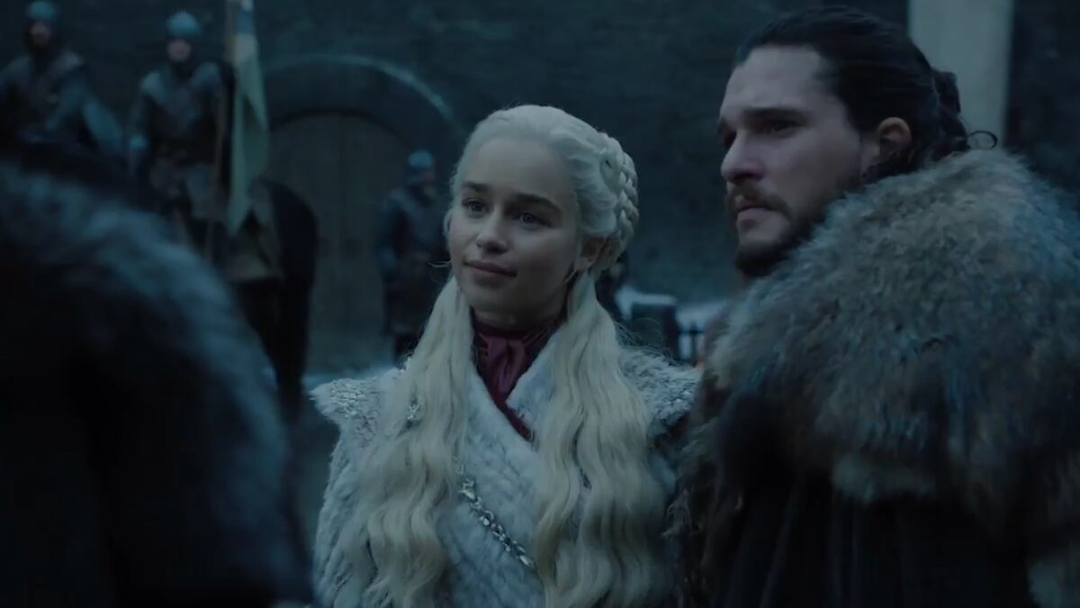 En el trozo de Juego de tronos se ve la llegada de Jon y Daenerys Targaryen a Invernalia, donde son recibidos por Sansa Stark. Es la primera vez que ambas se ven y Sansa recibe a la madre de dragones con un tenso "Invernalia es suyo, su alteza". Aparecen también Brienne de Tarh y Ser Jorah Mormont.