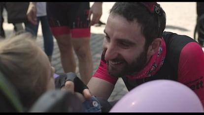 Durante la primera parte del documental, que huye de la didáctica científica para centrarse en lo estrictamente humano, un hecho inesperado va a marcar el viaje de Paco Santiago, el padre, Rovira, sus dos acompañantes ciclistas y el equipo de producción: en una carretera francesa un coche se los lleva por delante por una distracción del conductor y casi milagrosamente (la palabra, en una película como esta, quizá no sea baladí) salen ilesos. El brutal accidente, captado por las cámaras, aparte de añadir un plus de sorprendente thriller en directo, es bien aprovechado por la directora para reflexionar sobre la débil línea que a veces separa la vida de la muerte, e incluso sobre la existencia de Dios. Algo que en un caso de peregrinaje en busca de una esperanza encaja a la perfección y nunca resulta forzado.