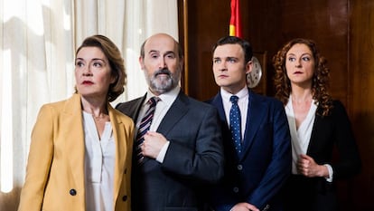 Tal vez por eso no hay en España una tradición de ficciones satíricas en la tele alla maniera de las del Reino Unido, maestros absolutos en el género. El humor político en España corre en revistas, en viñetas, en programas de sketches y, cómo no, en las crónicas parlamentarias -donde aparece desnudo e involuntario-, pero no ha sido argumento para series cómicas. Vota Juan, estrenada esta semana en TNT con la firma de un triunvirato potente de escritores de comedia (Juan Cavestany, Diego San José y Víctor García León), es una pica en ese territorio tan poco pisado. La serie cuenta el ascenso de un trepa patético y con menos escrúpulos que el peor de los trileros que quiere hacerse con la presidencia del Gobierno desde su marginalidad como ministro de Agricultura.