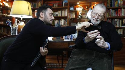 Una hora antes, Bayona se había sentado en el despacho de Ibáñez Serrador. En las paredes, todos los premios imaginables por su labor televisiva, libros y enciclopedias de temáticas eclécticas; en el centro, una mesa con fotos y el Goya de Honor, que el director de La residencia y ¿Quién puede matar un niño? recibió en la fiesta de los nominados el pasado 14 de enero. Bayona, admirador de su obra, ha sido uno de los impulsores de este reconocimiento, y para crear el vídeo que se proyectará en la gala del sábado ha revisado todos los trabajos de Chicho. En el iPad lleva preparado el cuestionario. "Nunca he hecho esto", sonríe tímido. Empiezan hablando de las múltiples profesiones del homenajeado: cineasta, realizador de televisión, guionista, director teatral y actor. "Con cualquiera me conformo". ¿Se queda con alguna? "Con el actor". Para Ibáñez Serrador el Goya ha supuesto todo un gozo: "Porque he estado muy separado del mundo del cine voluntariamente. Y aunque me han invitado a varias galas, nunca he ido. Ha sido una alegría que estuvieras en la entrega, porque soy un admirador tuyo". "Yo también lo soy tuyo".