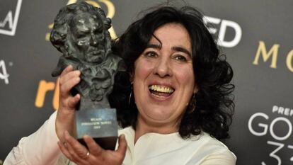 La directora Arantxa Echevarría se estrenaba como nominada en la gala de los Goya. "A mis 51 años", subrayaba, el sábado, con una sonrisa, en la sala de prensa. Se llevó el premio a la mejor dirección novel, por Carmen y Lola, pero también se llevó a la ceremonia una cámara de EL PAÍS. Durante todo el día, la cineasta estuvo filmando cómo ella y su entorno vivían el acercamiento a los Goya y, luego, la gala. Aquí se puede ver el resultado.