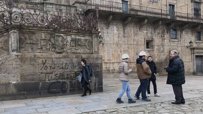 Pintadas contra la Iglesia, los Borbones y Vox en la catedral de Santiago