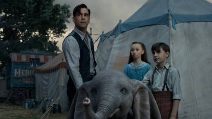 Recurren a Tim Burton para conducir Dumbo. Apuestan sobre seguro. Lo que más le gusta a este hombre es narrar cuentos, moverse en el terreno de la fantasía, otorgándole a veces un tono inquietante. Hace bastante tiempo que está en baja forma, que sus sueños y sus pesadillas han perdido su poder de fascinación, que algunos espectadores sentimos demasiada añoranza de películas maravillosas como Ed Wood y Big Fish. Burton hace un trabajo solvente, aunque sin sorpresas, con la historia de aquel bebé elefante dotado de unas orejas descomunales que propician la burla. Tengo un recuerdo muy vago del argumento da aquellos dibujos animados, pero alguien me pregunta si en la nueva versión aparece el borracherón que pilla el elefantito. No. Los tiempos exigen corrección, y Burton, cuyo cine siempre estuvo emparentado con la transgresión, se limita a filmar con profesionalidad un guion ajeno que no ofrece sorpresas. Y es imposible no creerse a Danny DeVito interpretando al dueño de un circo y presentador del espectáculo. O a Michael Keaton de villano melifluo. Estoy seguro de que los críos la disfrutarán mucho. Y los adultos pasarán un rato aceptable. Es mi caso.