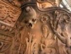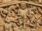 Además de reptil, el demonio ha sido dragón, león, mono o animales híbridos… Así, los 80 alumnos del curso han podido observar ejemplos de Satán entre el centenar de construcciones románicas de los pueblos y aldeas del entorno. Como en la ermita de Santa Cecilia de Vallespinoso de Aguilar, erigida en lo alto de una peña a finales del siglo XII. En un capitel, un ser repugnante, con escamas, abraza a un avaro. Sabemos que este lo es porque lleva por castigo una pesada bolsa con monedas colgada del cuello. Como si fuese una secuencia, en otro capitel ese demonio tira de la balanza del juicio final para llevarse al infierno por toda la eternidad el alma del tacaño.