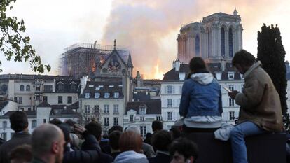 Miles de parisinos y turistas se congregan para ser testigos impotentes de la destrucción del monumento