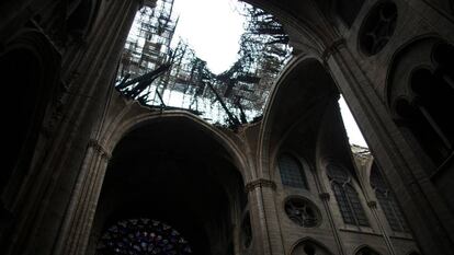 EL DÍA DESPUÉS. El martes amanece gris y frío, como el ánimo de todos en Notre Dame. Los restos carbonizados del tejado cubren toda la plaza frente a la catedral. Dentro, la imagen es más dantesca aún. “Sobre la nave hay dos agujeros enormes, como si una bomba hubiera caído sobre la catedral”, relata el rector. Aun así, hay algunas buenas noticias. Se han logrado salvar las principales reliquias, algunas sacadas en brazos por los propios bomberos, y los rosetones no corren peligro inmediato. Tampoco se ha dañado el órgano. Incluso se ha hallado el gallo que coronaba la malograda aguja. La noticia no anima a muchos de los bomberos que siguen trabajando sin descanso. “Hicimos lo que pudimos, pero estoy triste”, susurra uno, a pesar de que les han prohibido hablar con los medios. Aunque tiene seis años de experiencia, reconoce: “Este fuego no lo olvidaré jamás”. Pocos lo harán.