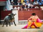 12.- Manuel Escribano, herido. El toro Español, de Adolfo Martín, astifino, alegre y fiero, infirió una grave cornada al diestro sevillano cuando lo muleteaba con la mano izquierda. Los tendidos tomaron partido por el toro y no fueron justos con el torero.