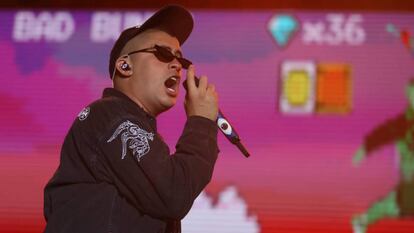 Hace cuatro años, Bad Bunny trabajaba de reponedor en un supermercado de su Puerto Rico natal. En la noche de este jueves, cuando apareció en el escenario del festival Río Babel de Madrid con cazadora negra, gorra, gafas de sol y una mascarilla en torno al cuello, acababa de arrebatar a su amiga Rosalía el récord de reproducciones en 24 horas (3,6 millones) en Spotify en España con el disco que sacó por sorpresa con J Balvin la semana pasada, Oasis. Sus 25 años y su pose trapera parecían decir: "Lo merezco, soy el mejor". Sus palabras, en cambio, fueron de gratitud absoluta hacia los que llama sus "fanáticos", a los que recompensó con un recital potente y sin tregua.