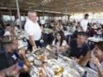 El periódico Levante cuenta en portada que dos palmeras han caído derretidas por el calor en pocas horas, una cosa increíble pero que te la crees, con el calor que hace. Pero aquí corre el viento. Los gorriones se aventuran en las mesas a robar migas de pan. Se oyen frases sueltas que hacen gracia: “Carletes, tómate el Aquarius”. En la mesa de al lado pagan y se ve ese detalle tan bonito de llamar al camarero para decirle que se ha equivocado en la cuenta, pero a favor del cliente, y aun así les dice que lo dejen como está. En esos momentos uno cree en la especie humana. Hay mucho movimiento, el fin de semana dieron 250 comidas, 80 calderos, 12 fogones tirando.