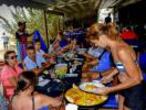 La media de edad es joven, salvo algunas familias con niños y hay mayoría de extranjeros. A Mallorca no llegas con el coche y notas un cambio de nivel, ves turistas con pasta de nacionalidades que no sueles encontrar en los chiringuitos ibéricos: mujeres con velo, chinos, indios. Piden tortilla francesa y sangría, habiendo salmonetes. El lugar transmite una sensación tan única que parece de ricos, pero resulta que el chiringuito es normal, una carta sencilla con pescado del día, y van mallorquines de toda la vida. “La cocina está en una cueva, que es donde empezó esto”, comenta Francisca Morell, la última de su familia en llevar el negocio.