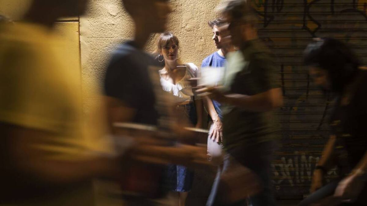 La gente pasa rodeando a la pareja con minis y cervezas en la mano. Hay tanto calor como ganas de fiesta. Algunos se vuelven y preguntan si se pueden hacer ellos también una foto y el precio del retrato. Jonás Trueba, la mitad de la pareja, sonríe avergonzado. Ya ha avisado: “Lo paso fatal haciéndome fotos”. A su lado, se ríe Itsaso Arana, coguionista y protagonista de su nueva película, La virgen de agosto: “A ver si le motivo”. Ponerse una noche de las fiestas más castizas de Madrid, las de San Cayetano, san Lorenzo y la Paloma, delante de una cámara resulta para Trueba algo muy similar a lo que vive el personaje principal del filme: un acto de fe.