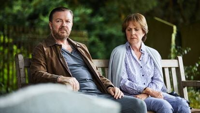 El tabú de la muerte ha quedado a un lado para muchas de estas producciones. En El método Kominsky, protagonizada por los veteranos Michael Douglas y Alan Arkin en Netflix, los chistes sobre la proximidad de la muerte, los problemas con la próstata y otras cuestiones derivadas de la edad son constantes. Ricky Gervais en su más reciente creación televisiva, After Life (también para Netflix), se mete en la piel de un hombre que no encuentra sentido a la vida después de que su mujer haya fallecido e incluso se plantea el suicidio. El personaje de Jim Carrey en Kidding (Movistar +), una estrella de la televisión infantil, cuando se apagan los focos lleva una vida triste y depresiva desde la muerte de su hijo. Las protagonistas de Muertos para mí (Netflix) se conocen en un grupo de ayuda para personas que han sufrido una pérdida cercana mientras que una de ellas trata de averiguar quién fue el responsable del accidente en el que murió su marido.