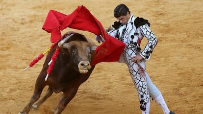 Deslucida, porque hubo más suspiros que emoción, que es de lo que se trata; y porque no hubo toros, sino sucedáneos inválidos, descastados y nobilísimos. Deslucida, porque dos artistas solo pudieron dejar detalles ante un público amigo y en exceso cariñoso. Morante de la Puebla, vestido de bandera española -taleguilla roja y chaquetilla amarilla-, en horas bajas como torero, puso voluntad, pero no le acompañó la brillantez ante un lote con muy escasa movilidad. Lo mejor, ante el tercero, que brindó al líder de Vox, Santiago Abascal. Un vistoso quite por chicuelinas; ayudados por alto, prestancia y hondura en un par de tandas con la mano derecha y un largo natural. Y como el quinto se paró, ahí acabó su tarde.