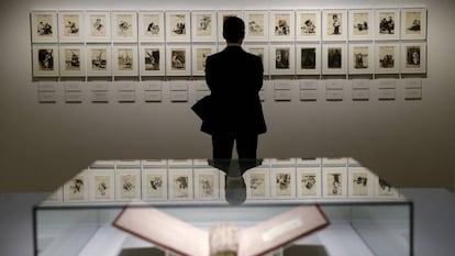 Recibe al visitante su famoso Cuaderno italiano, el primero que compró para plasmar ideas durante su primera estancia en Roma, adonde había acudido a las fuentes para perfeccionar su técnica con el lápiz. Después vienen los estudios (para los frescos del Pilar en Zaragoza o de los cartones para tapices); los aguafuertes comerciales a partir del maestro Velázquez; las cartas con garabatos subidos de tono; más cuadernos (como los de Sanlúcar, Madrid o Burdeos); las series poco conocidas (El espejo mágico en el que un dandi se refleja como un mono); y las semillas creativas de sus famosas colecciones de estampas, donde los sueños se mezclan con las pesadillas y la denuncia con la ironía: los Caprichos, la Tauromaquia, los Disparates y los Desastres, cuando el trazo se deshace hasta la abstracción de la mancha. El recorrido lo completan agrupaciones por asuntos que obsesionaban a Goya, y que a menudo han sido interpretados desde los tópicos “por la mala literatura”, según Manuela Mena, gran experta en el genio y jubilada desde el año pasado tras casi cuatro décadas de vinculación con la casa: la violencia contra la mujer, los toros, la vejez o las multitudes como juguetes en manos de las élites.