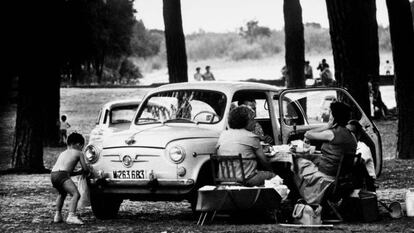 Huguet ha recurrido al icónico Seat 600, que el economista Fabià Estapé consideró el verdadero artífice de la Transición, para viajar a los sesenta. Al volante de esta metáfora, viaja a aquella España con ojos de baby boom, pero penetrando con mirada de espeleóloga muy adulta para componer un escrupuloso friso sobre la época. Una España que, más allá del traumatismo político y moral, era el escenario en el que la vida se hacía sitio y se amoldaba como podía, y a la que, según la autora, “era tan difícil odiarla como amarla”.