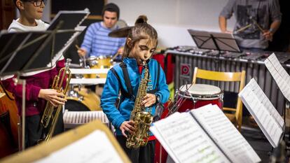 Ximet prefiere una jam session a un partido de fútbol. Tiene ocho años y toca varios instrumentos, pero ahora está centrado en el saxo. “Siempre me ha gustado el jazz, desde pequeñito”, dice mientras merienda, con la melena recogida por una goma. Su madre explica que lo ha mamado desde siempre: tanto ella como el padre son músicos. Un caso muy diferente al de los progenitores de Mar, de seis años, con su flauta en una mano. “Viene porque quiere, no porque le insistamos. Nunca le hemos dicho nada”, apunta el padre. La niña asiente.