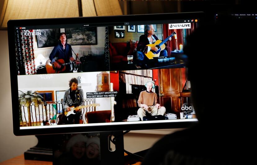 Si lo que se buscaba era un efecto analgésico en estos tiempos de zozobra y ansiedad. Si se trataba de que las estrellas de la música y el espectáculo cumplieran un papel de ídolos pedagógicos, que tocaran canciones desde el salón de sus mansiones mientras millones les mirábamos desde el salón de nuestras casas, se podría decir que ha sido misión cumplida. Ver a Charlie Watts en un cuadrado de la pantalla tocar la batería de You can’t always get what you want sobre unos cajones junto al sofá, mientras Mick Jagger canta, Keith Richards hace los coros y Ronnie Wood marca la guitarra miran...