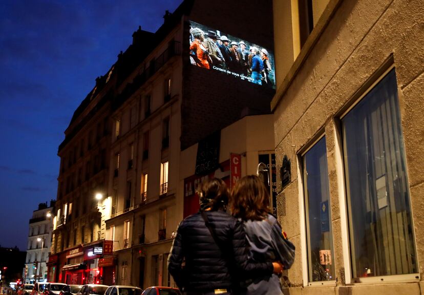 El último cine de París no vende palomitas ni refrescos para amenizar la sesión. En realidad no vende nada, ni siquiera entradas, porque no tiene ni butacas. La proyección de la película, una sola a la semana, los viernes a las 21.00, tiene lugar en el muro de la casa colindante con el cine La Clef, en el Barrio Latino. Aunque el sonido deja algo que desear, cada vez son más los vecinos que acuden a disfrutar cada viernes de la que se ha convertido en la única oferta cinematográfica fuera de casa de la capital francesa, que ostenta con orgullo —o lo hacía, antes del coronavirus— el ser una de las ciudades más cinéfilas del mundo, con más cines y rodajes que ninguna otra.
