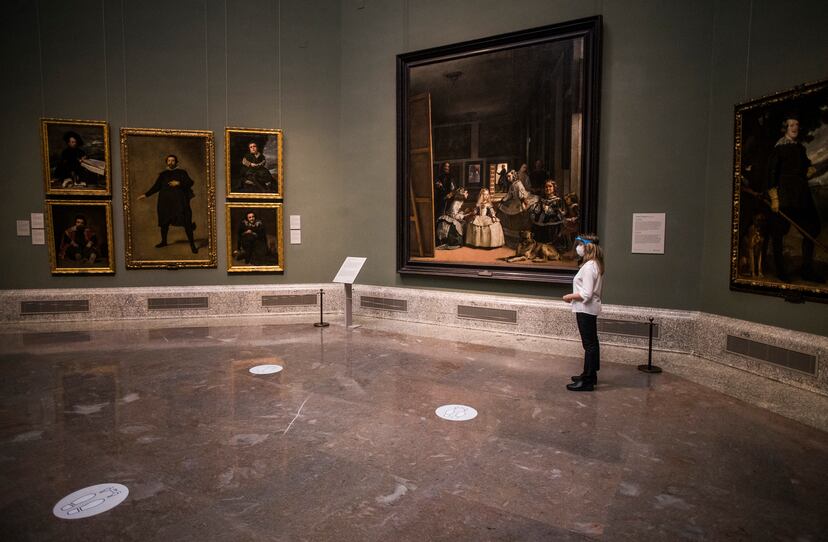 “Aquí, más que del coronavirus, podríamos testar a los visitantes del síndrome de Stendhal”, dice Miguel Falomir sobre esa enfermedad imaginaria que bautizó en Florencia el escritor francés, mareado por tanta maravilla artística. El director del Prado está en mitad de la sala 12, el sancta sanctórum del museo. Las meninas siguen ahí, como siempre, posando en el espacio inusualmente vacío, pero la cosa está más animada que de costumbre esta mañana del Madrid de la fase 1. Son los nuevos vecinos: Las hilanderas, Los borrachos y cinco bufones velazqueños dispuestos a la manera de un retablo han dejado las salas donde habitualmente se encuentran para acomodarse temporalmente aquí, como parte de Reencuentro, la exposición de 250 de las obras más representativas de la colección permanente con la que el museo reabre sus puertas este sábado tras un parón de casi tres meses forzado por la pandemia.