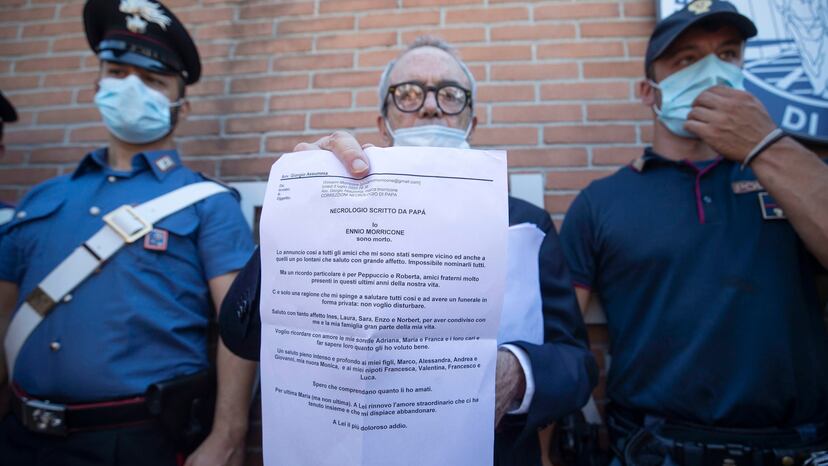 “Yo, Ennio Morricone, he muerto”, escribió en una carta el genial compositor italiano, fallecido este lunes a los 91 años, para despedirse de sus amigos y de su familia. Tiempo antes de sufrir el accidente doméstico que le costó la vida, el maestro decidió redactar una curiosa misiva con algunas palabras de adiós y de amor, que su abogado leyó en público, por una razón: quería irse sin hacer ruido. “Lo anuncio a todos los amigos que siempre han estado cerca de mí y también a aquellos que están un poco lejos, a los que saludo con gran afecto [...]. No quiero molestar a nadie”, lo resumió él mismo. También por este motivo, siguiendo su voluntad, el funeral será privado.