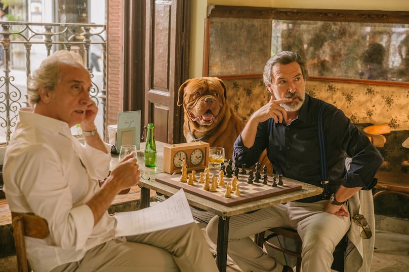 No es solo un caso escogido a vuelapluma. La película está cargada de diálogos así, y los intérpretes, claro, no tienen más remedio que declamarlos casi con un arqueo de ceja más que decirlos, porque resultan complicados incluso de expresar. Suerte que son buenos o muy buenos y, desde el protagonista Gonzalo de Castro hasta el último de los actores y actrices, todos salen vivos del ejercicio de riesgo.